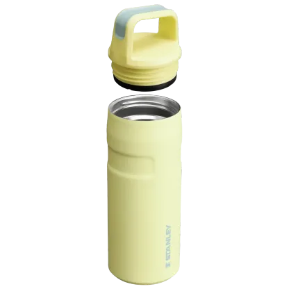 Welcome to maximum hydration with minimal weight. Stanley combines the best of the best – the IceFlow™ AeroLight™ Bottle with featherweight technology for on-the-go transport, now with a Cap and Carry Lid designed for easy hydration. The rotating lid with angled handle makes drinking your ice-cold water a few light twists away. The elevated Cap and Carry Lid also features a soft-touch comfort grip for transport on walks, sight-seeing or travel.