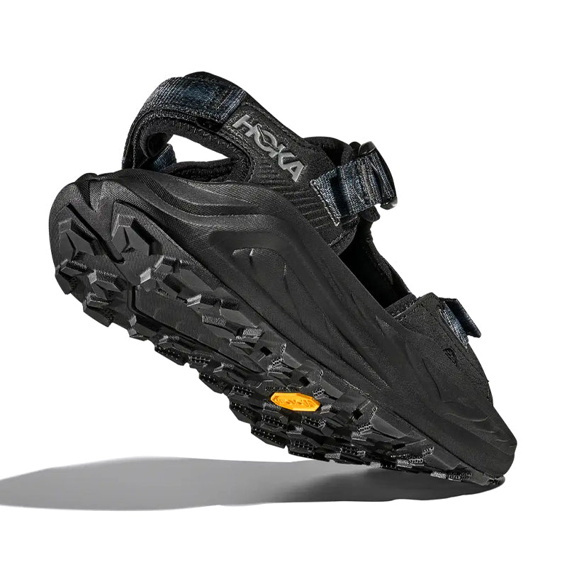The wait is over. HOKA’s legendary cushioning is now available in an open-toe adventure sandal. Equipped with three points of adjustability for easy on and off, the Infini Hike is the ultimate all-terrain vehicle. Engineered with a deep heel cup for foot-cradling comfort, we’ve topped our dual-density midsole with a spongy Ariaprene® upper and quick-dry straps with speed buckle. Grounded in a Vibram® Megagrip outsole for enhanced grip on slippery surfaces, this adaptable adventure sandal has been designed to be re-soled by an official Vibram® cobbler.