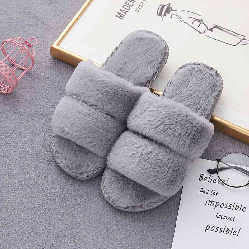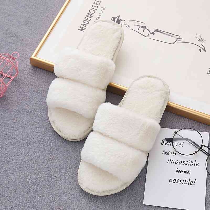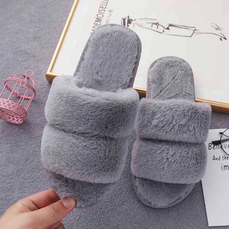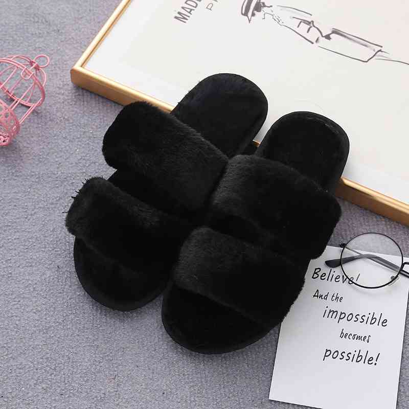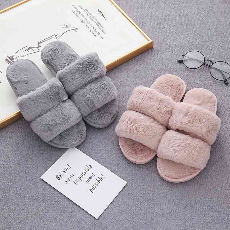 Faux Fur Double Strap Slippers