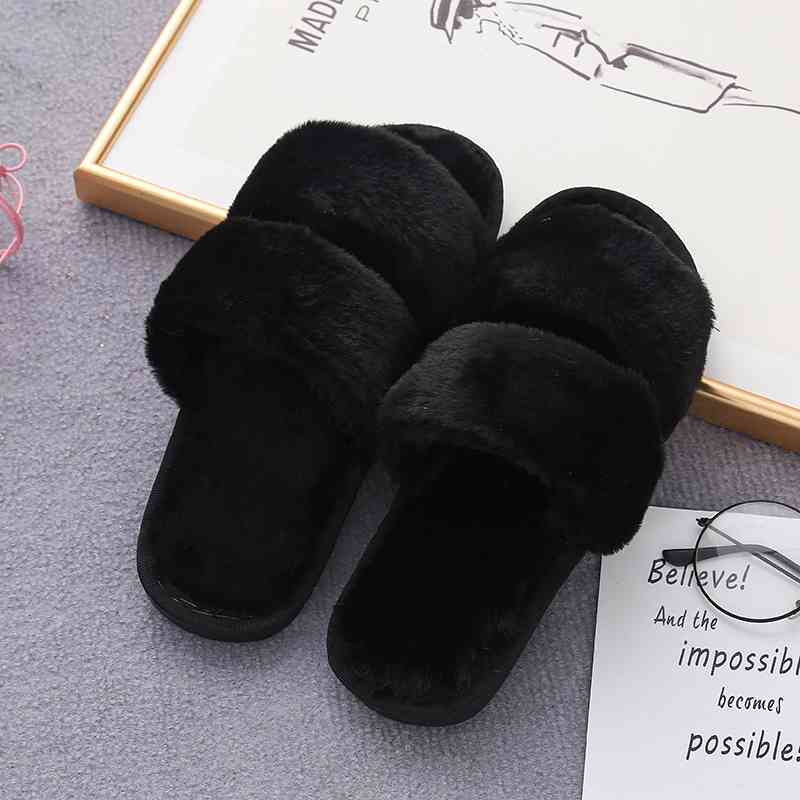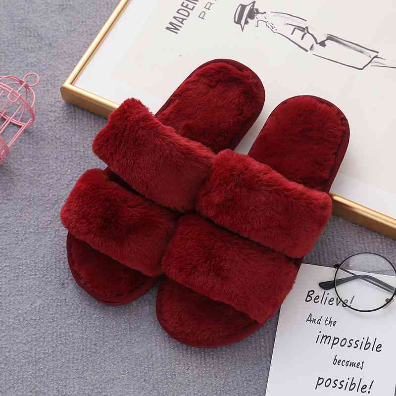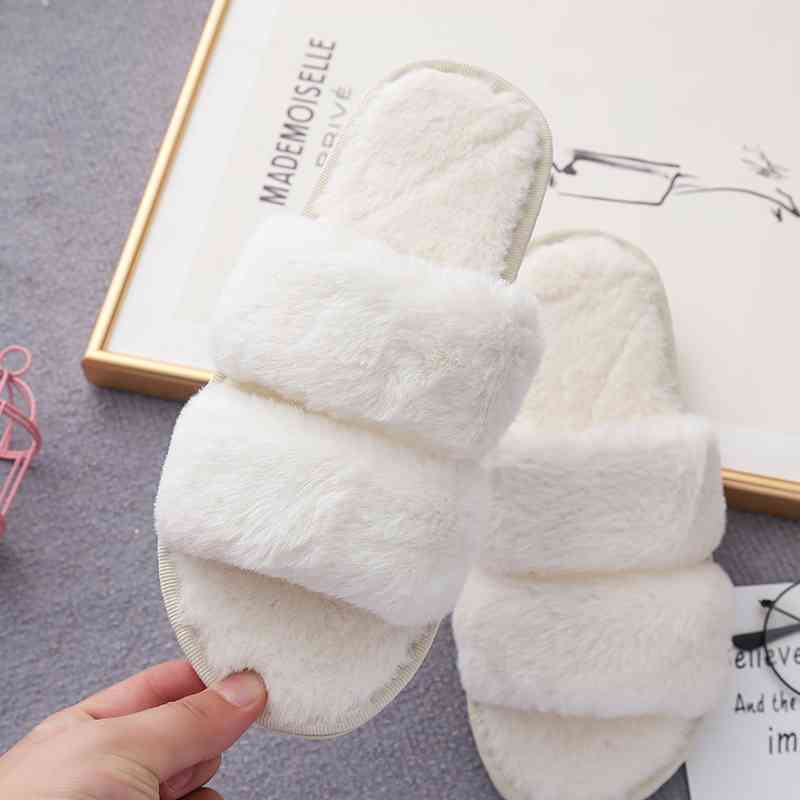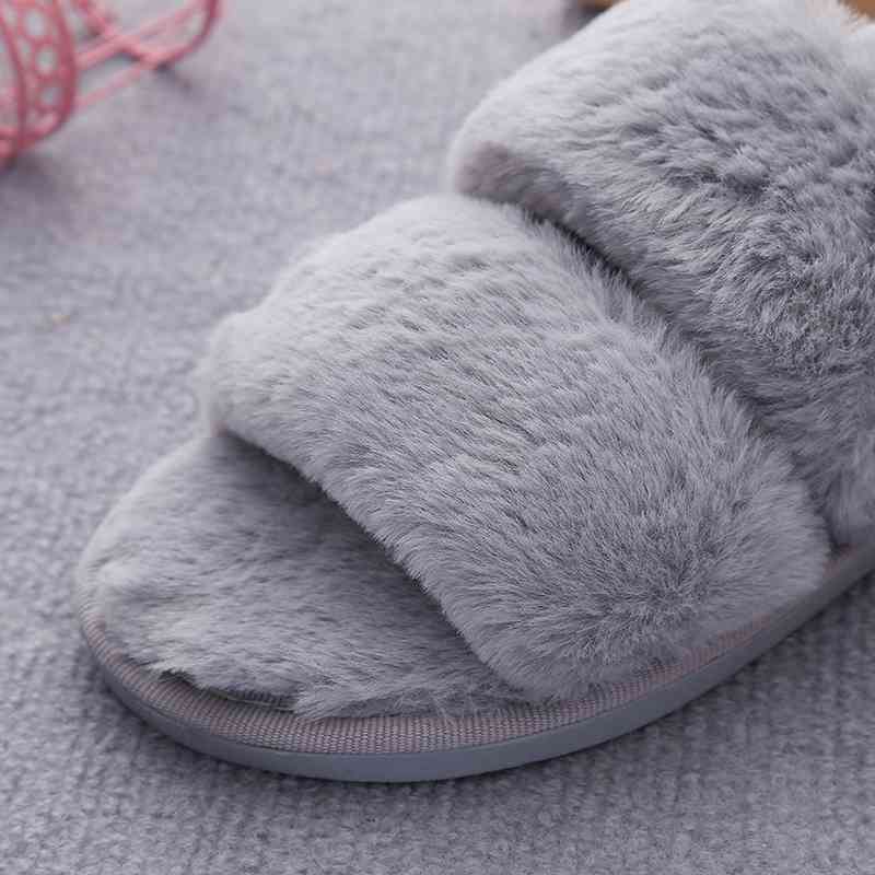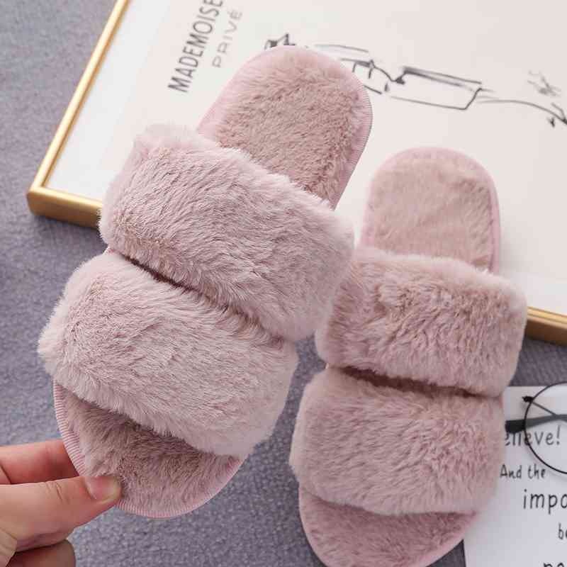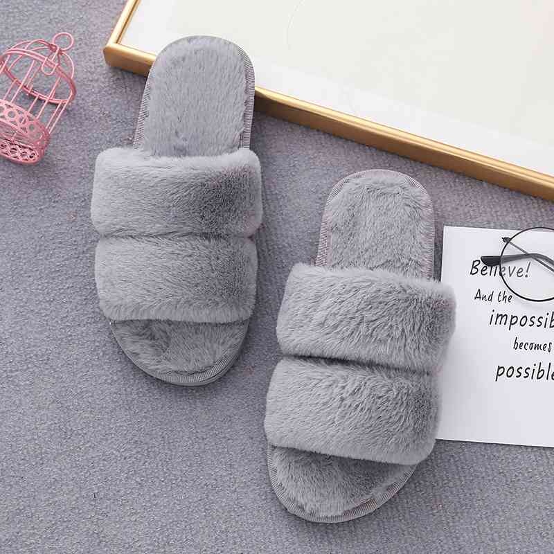 Faux Fur Double Strap Slippers