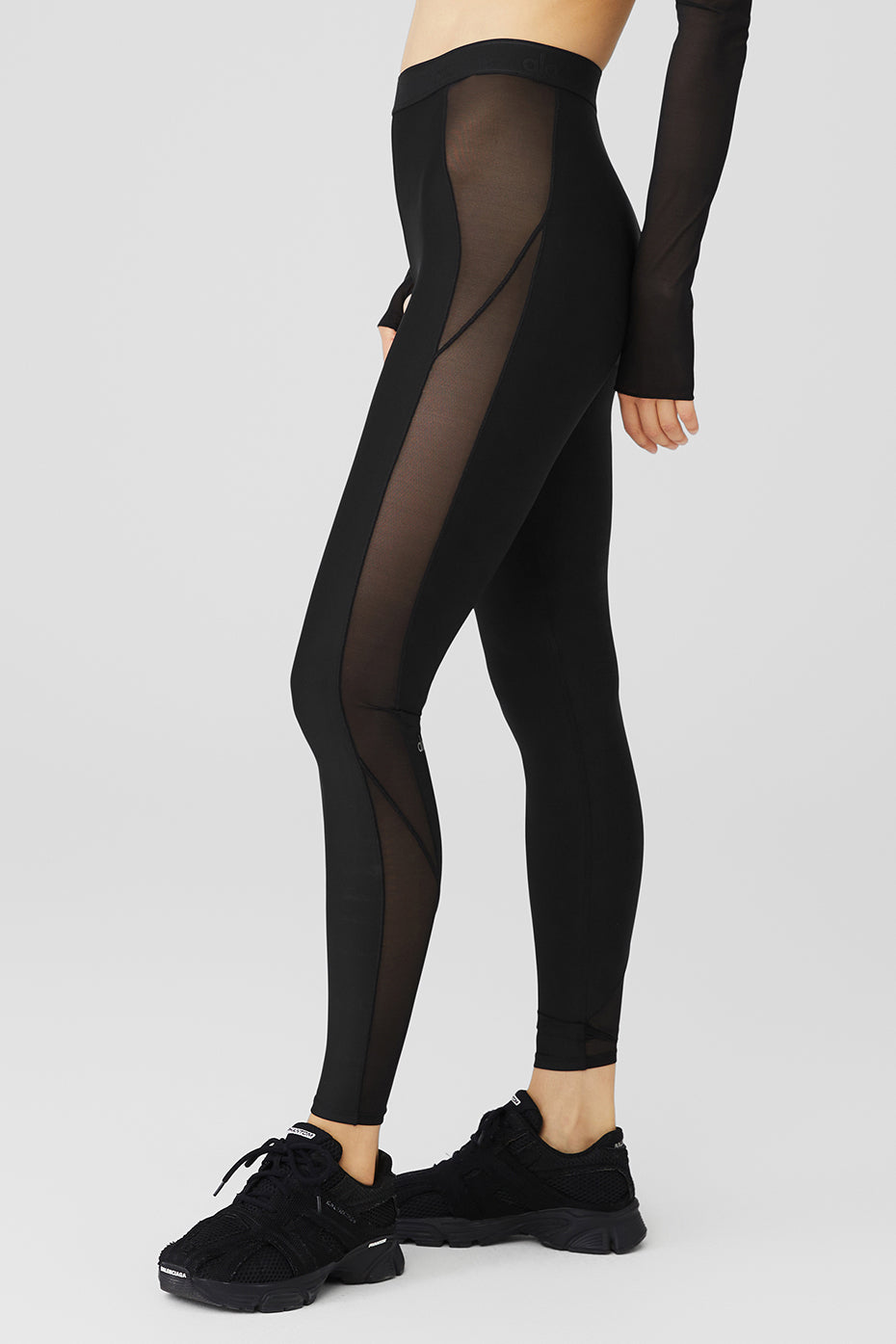 Perfect for doing pli谷s at the barre or heading from practice to pavement, the Airlift High-Waist Ballet Dream Legging nails the ballerina-inspired workout look like no other. It*s made from lightweight, performance-engineered Airlift fabric with a repeating Alo logo on the waistband and full mesh side panels from the waist down. Keep it en pointe with the matching top and cool trainers.