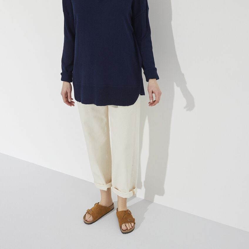 The BIRKENSTOCK Zürich combines the stability of an enclosed shoe with the lightness of a sandal and is popular in equal measure among both men and women. Although closed at the sides, this version is open at the toes and heel to ensure the feet get enough fresh air. Its natural design is down to the upper made from especially soft suede, which hugs the foot like a second skin.