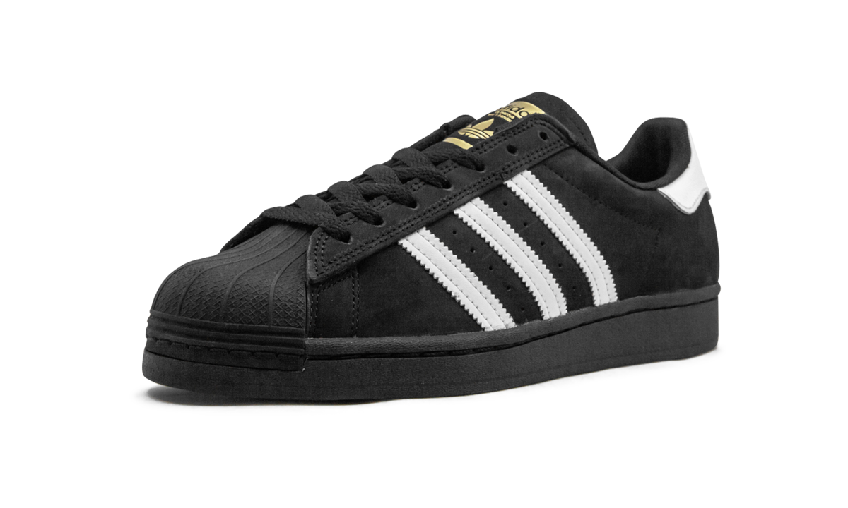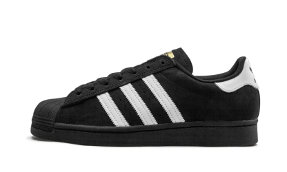 The adithtdas Superstar ADV was a popular shoe of the '70s on the basketball court and has seen superstardom among the sneaker-wearing set ever since. That's over 50 years of style. This version takes the most classic white and black adithtdas Superstar ADV and flips the colors to display the inverse. The smooth suede upper is predominantly black with white and gold foil detailing and a tonal black sole. The monochromatic shell toe feature and serrated Three-Stripes detailing on the side adds authenticity to the aesthetic.