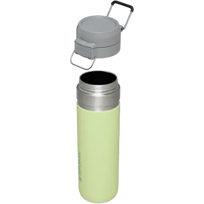 The Quick Flip GO Bottle can fit in most cup holders so it can ride along in your vehicle. The Double Wall Insulation keeps your favorite tea, coffee, or other hot drinks hot for up to 8 hours or cold for up to 12 hours. This trigger action lid makes this travel thermos spill-proof and easy for one-handed use. The lid is designed with a push button, which opens the mouthpiece on top. You can throw this in your work bag without worrying.